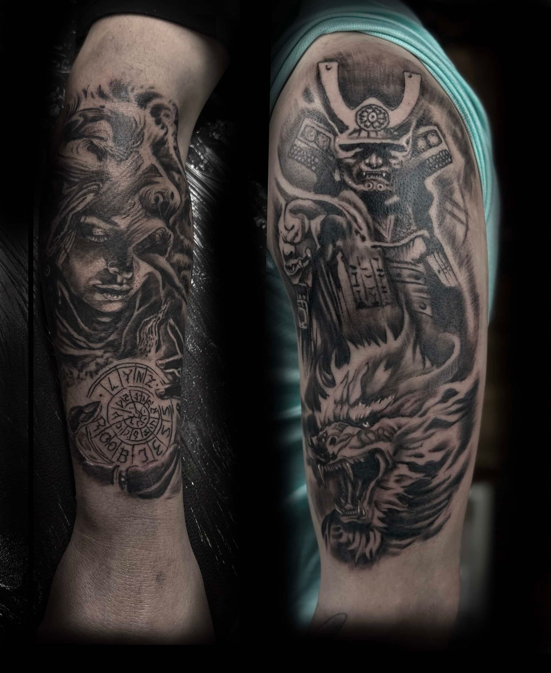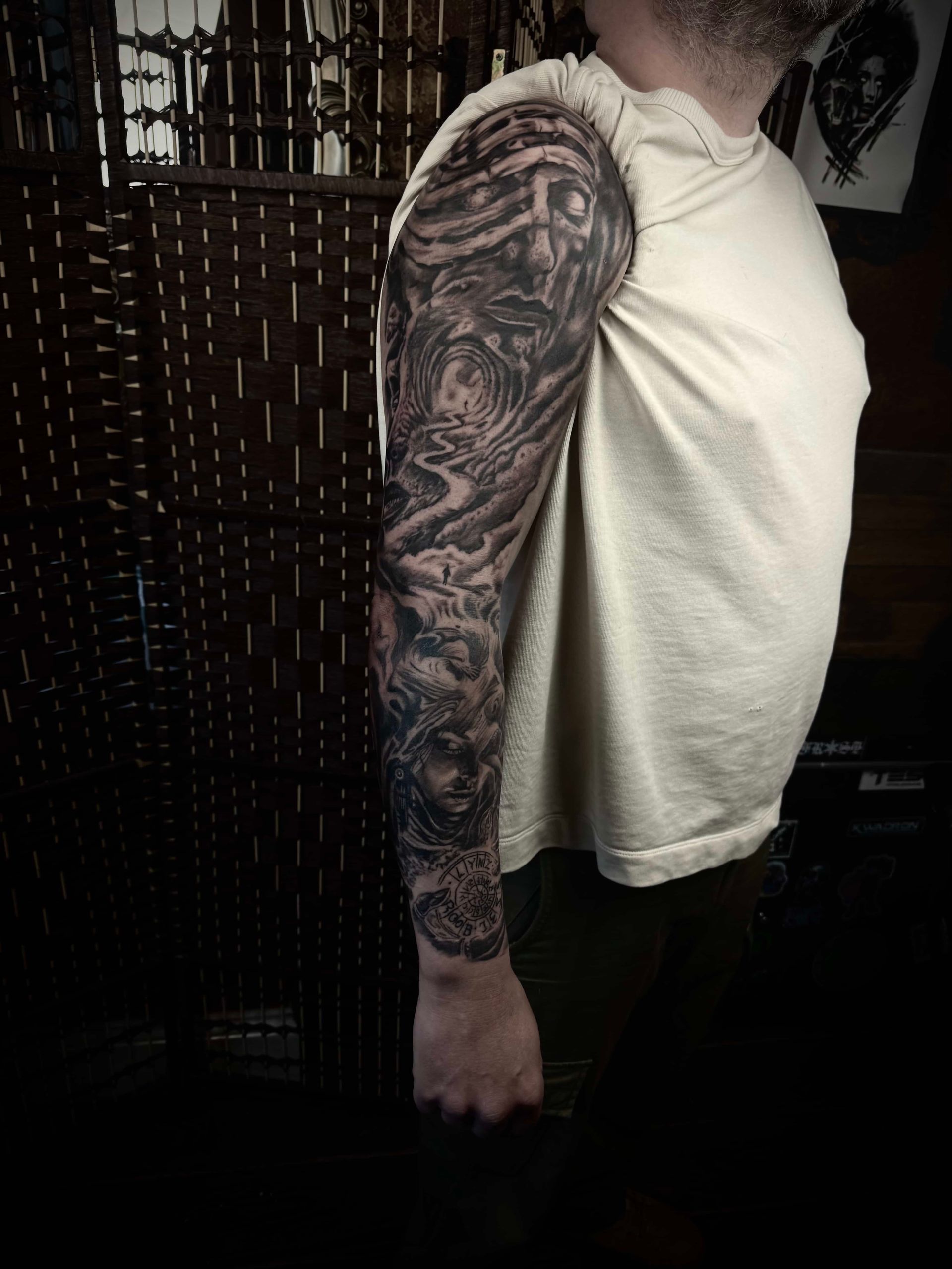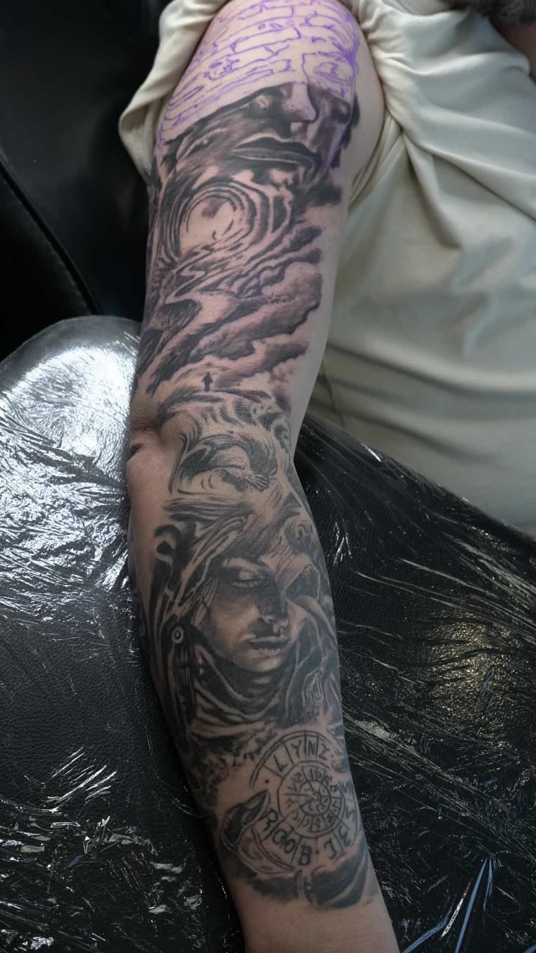 • A person has a tattoo of a woman 's face on their arm